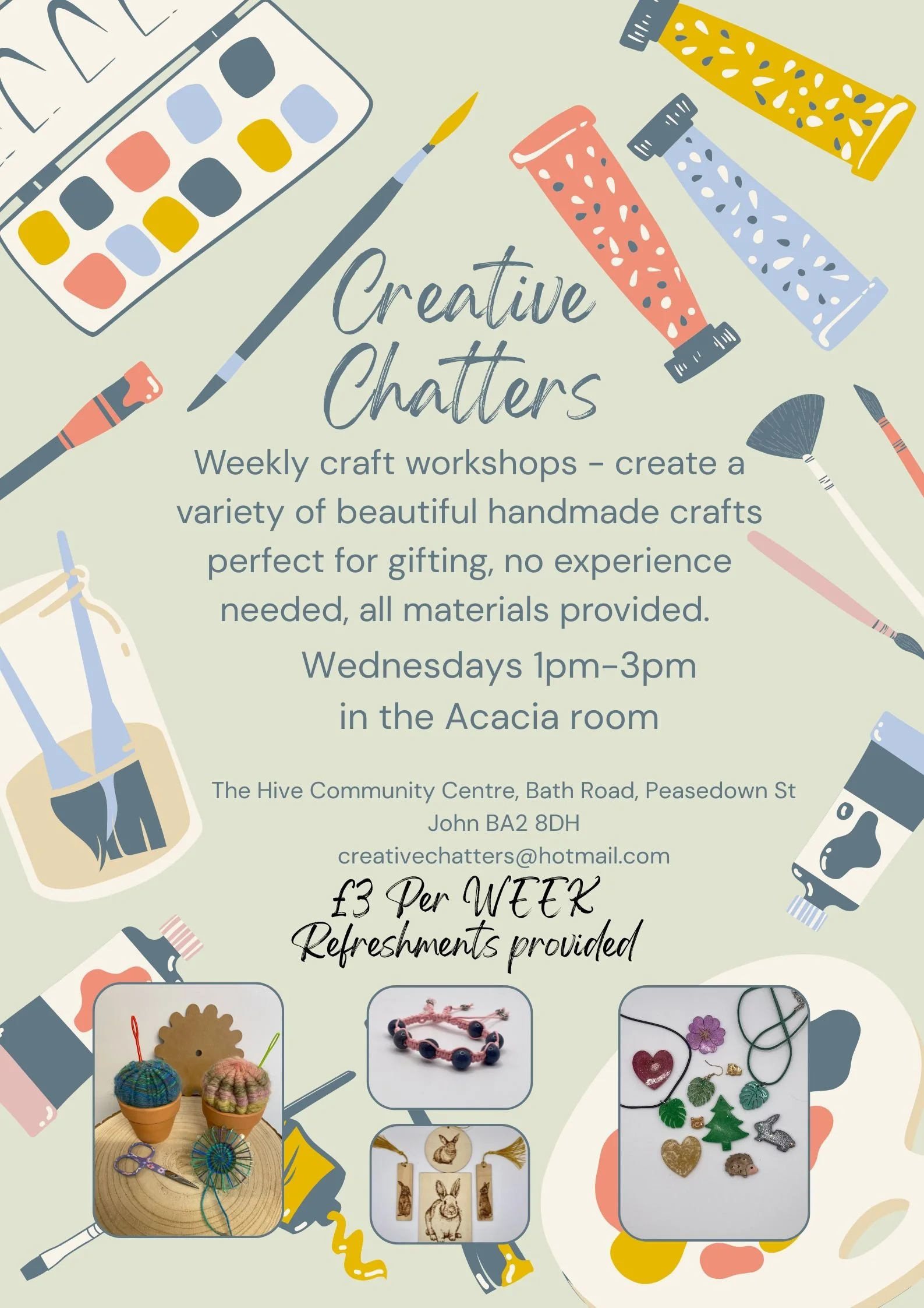 Weekly craft workshops - create a variety of beautiful handmade crafts perfect for gifting, no experience needed, all materials provided. Cost: £3 per week.