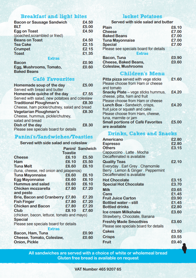 The Swallow Café is open for snacks and light lunches Monday to Thursday 8.45am-3.30pm and breakfast on Fridays from 9.30am-11.30am.